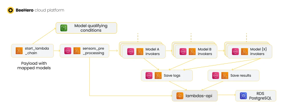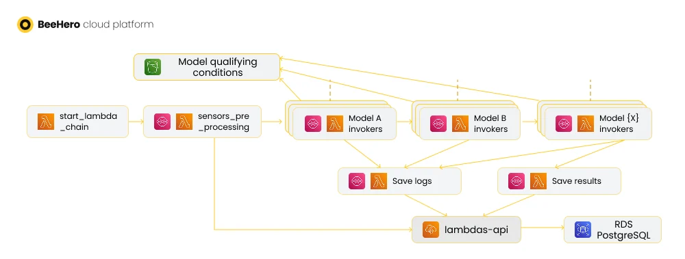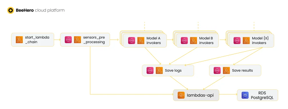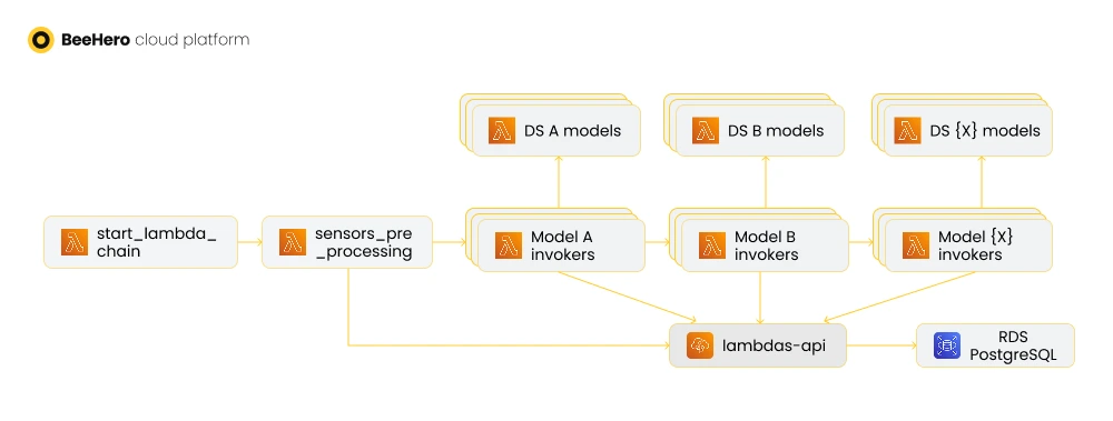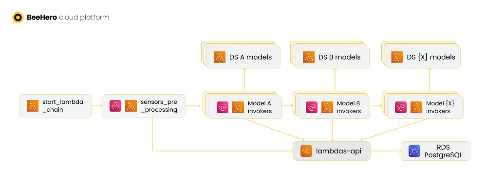 This approach worked well while BeeHero established its technology, but when we scaled our operations and started accumulating millions of samples a day, our lambda chain started to struggle as well: